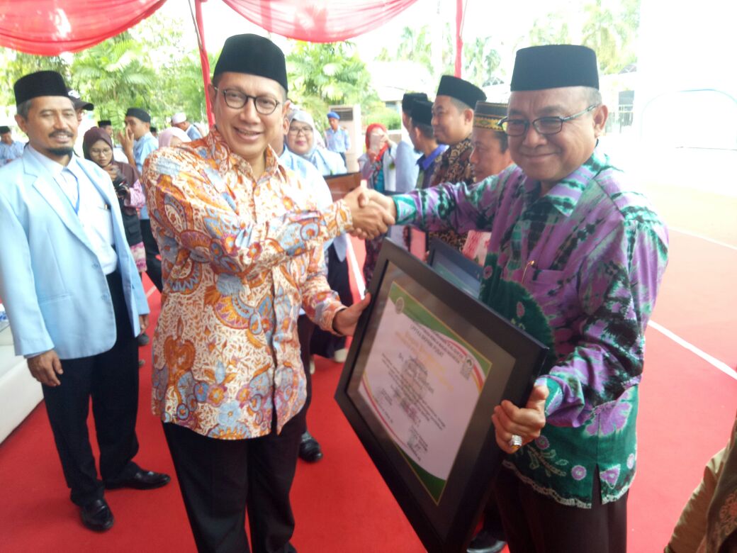 Tanjung, InfoPublik – Bupati Tabalong H Anang Syakhfiani atas nama Pemkab Tabalong menerima penghargaan anugerah peduli TK TP Alquran yang langsung diserahkan oleh Menteri Agama H Lukman Hakim Saifuddin, saat kegiatan Festival Anak Shaleh Indonesia (FASI-X) tingkat nasional di Banjarmasin Kalimantan Selatan, Jumat (15/9/2017).