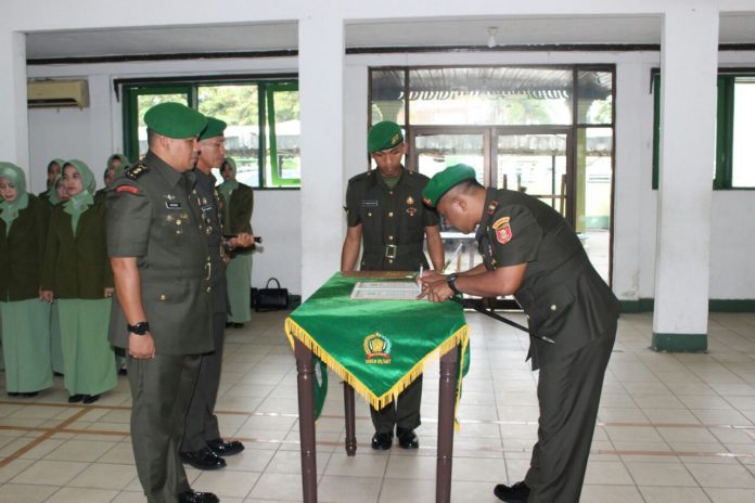 Serah terima jabatan (Sertijab) Komandan Kodim 1008/Tanjung, bersamaan dengan Sertijab Komandan Kodim 1004/Kota baru yang dilaksanakan, Senin (19/2/2018) bertempat diaula Makorem 101/Antasari di Jalan Jendral Sudirman No.7 Banjarmasin.