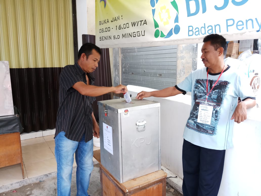 Tanjung, Masyarakat Rt 08 jalan Pelajar antusias datangi TPS 8 untuk mengunakan hak pilihnya, sebagian warga Rt 08 yang sebagian besar berprofesi sebagai pedagang di Pasar Tanjung, Kabupaten Tabalong, Rabu (27/6).