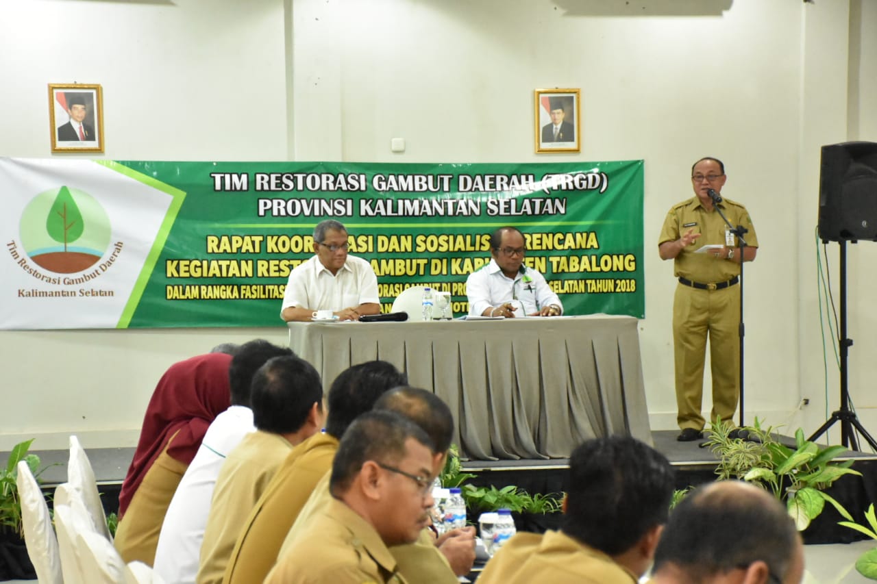 Ketua TRGD Provinsi Kalsel Saut Nathan Samosir mengatakan restorasi gambut akan dilaksanakan di Desa Bangkiling Raya dan Desa Bangkiling Kecamatan Banua Lawas. “Pembuatan sekat kanal salah satu restorasi lahan gambut di Tabalong,” jelas Saut.