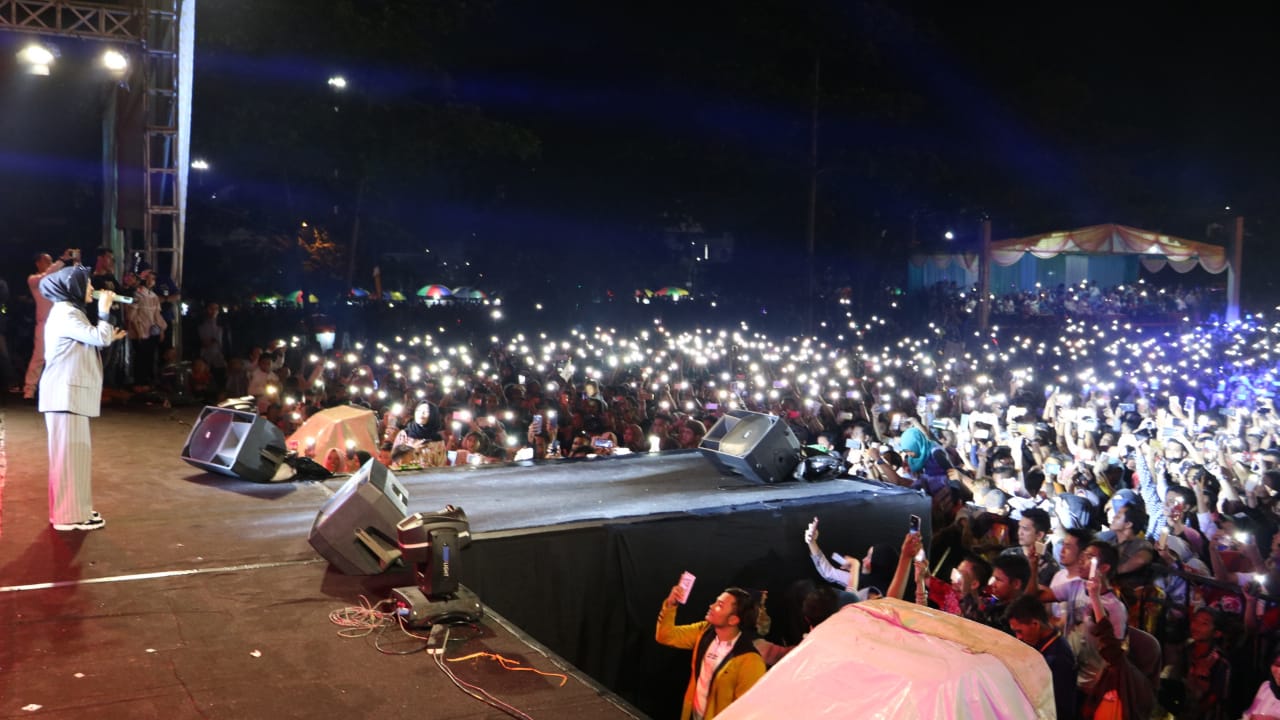 Terlihat dari ribuan warga dari berbagai penjuru berkumpul di Halaman Tanjung Expo Center untuk menyaksikan penampilan Sabyan Gambus, Senin, (4/12).