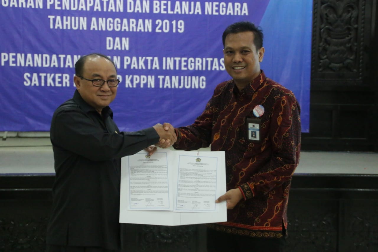 Pada 26 Desember lalu, KPPN Tanjung menyerahkan DIPA tahun 2019 dan penandatanganan pakta integritas secara simbolis yang disaksikan Bupati Tabalong.