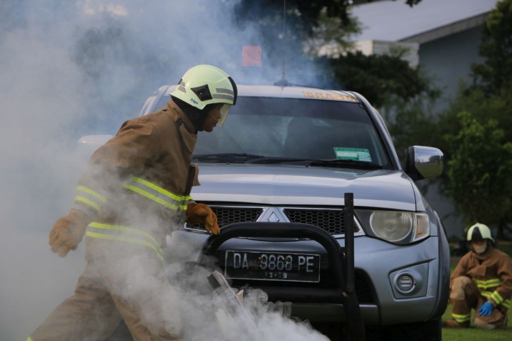 Tim Rescue Adaro Indonesia Melakukan Simulasi Penyelamatan Korban Kecelakaan Berkendara Pada Peringatan Bulan K3