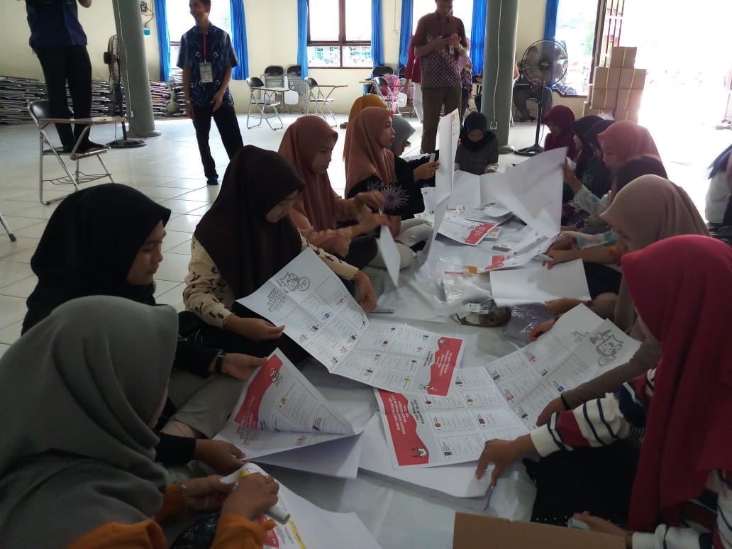 “Mahasiswa diajari dulu cara melipatnya, mahasiswa ini dibagi menjadi dua kelompok yaitu pagi dan siang, yang melipat pagi adalah para mahasiswa yang jadwal kuliah pada sore hari sedangkan yang melipat sore adalah yang kuliah pada pagi hari,” ujar Ibram Syah selaku Kasubag Keuangan Umum dan Logistik Sekretariat KPU.