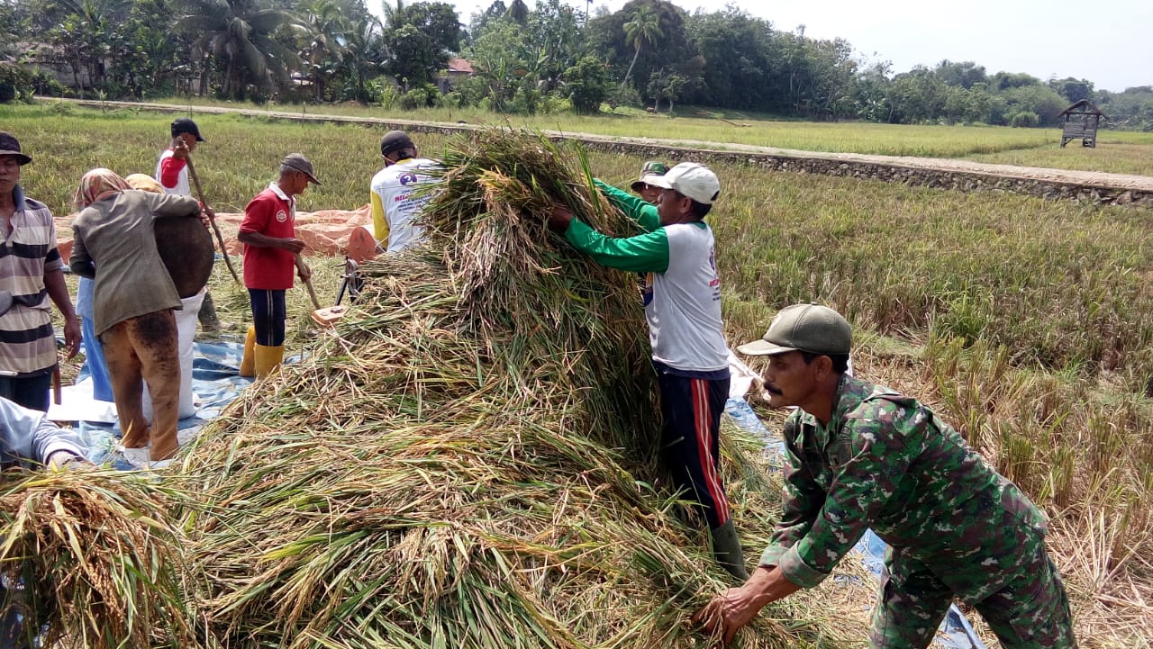 Serda Suwardi mengatakan, kegiatan membantu panen padi di sawah, selain dalam kegiatan TMMD juga sebagai bukti kemanunggalan TNI dengan rakyat serta mendukung program Pemerintah untuk meningkatkan ketahanan pangan. (Irwin Apriadi)