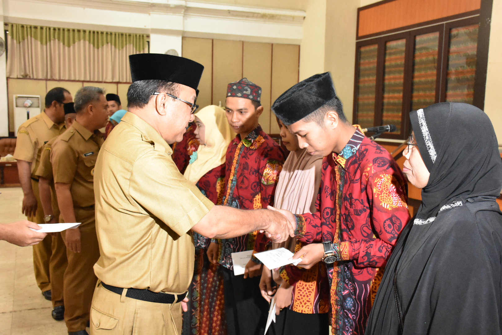 Pembagian bonus dilakukan langsung oleh Bupati Tabalong H Anang Syakhfiani didampingi oleh Wakil Bupati Tabalong H Mawardi, Sekda Tabalong AM Sangadji dan perwakilan dari Kemenag setempat.