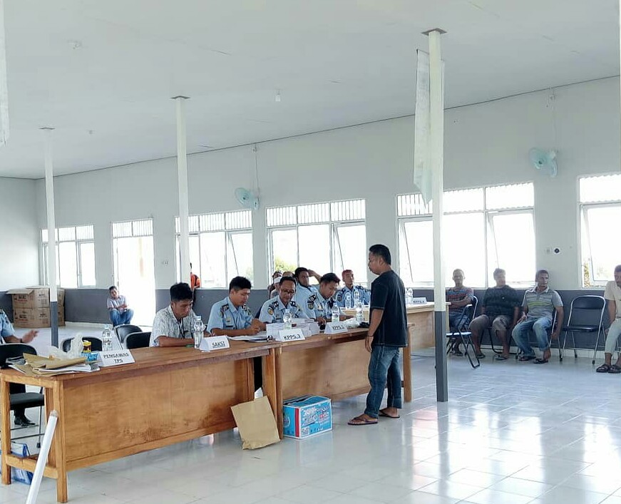 Logistik yang masuk hanya ada pilpres 52 kertas suara, DPD 50 kertas suara, DPR RI 44 kertas suara, DPR Provinsi 36 kertas suara, DPRD Kabupaten 0. Sedangkan, jumlah tahanan ada 239 orang ditambah dengan 20 orang petugas.