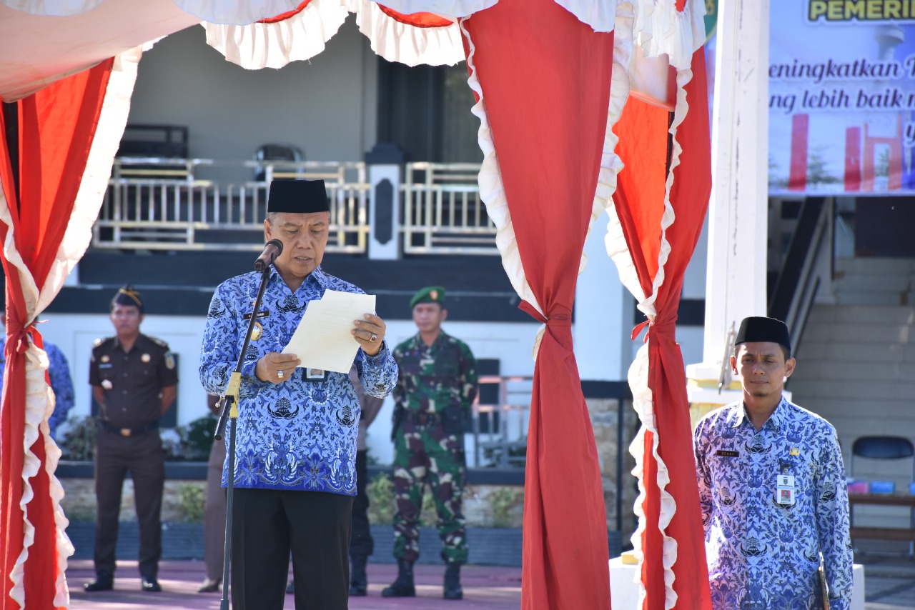 Wakil Bupati Tabalong, H Mawardi, selaku inspektur upacara dihadapan ratusan peserta upacara mengajak untuk mewujudkan dan memelihara dengan sebaik baiknya integritas, etos kerja gotong royong antar instansi di lingkungan Pemerintah Kabupaten Tabalong demi sebuah kemajuan dan pembangunan.