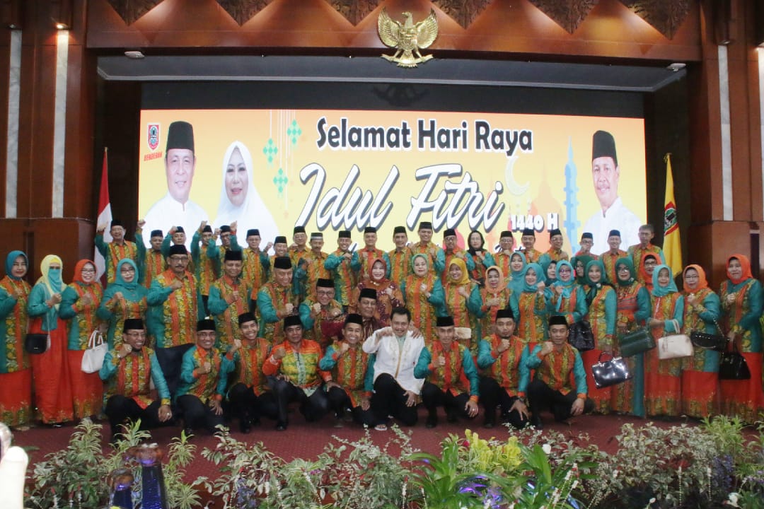 Selain menjadi tempat berkumpul dan silahturami para pejabat, suasana Gedung Mahligai semakin meriah dimana para tamu undangan yang hadir memakai baju seragam batik khas daerahnya masing masing.