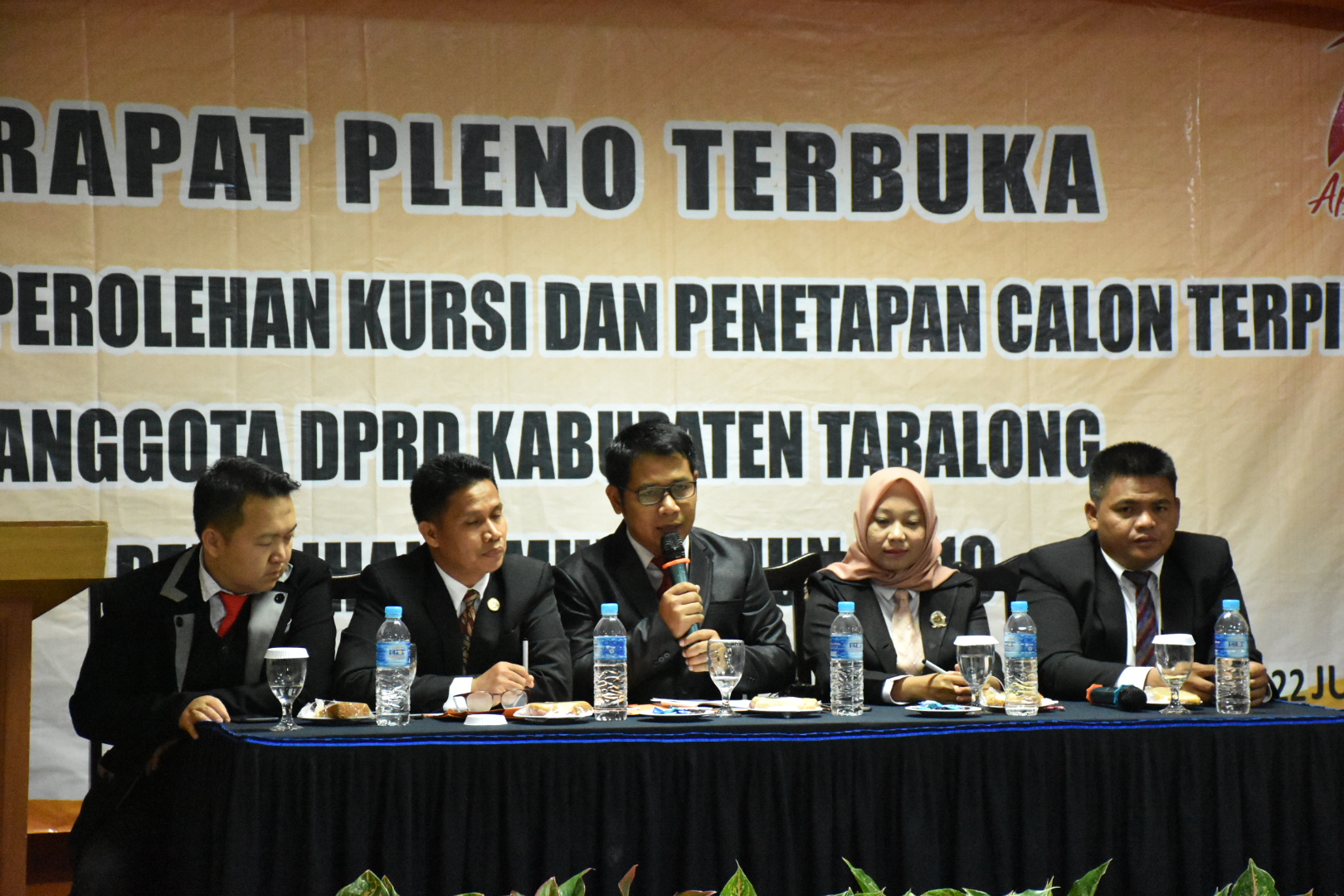 Komisi Pemilihan Umum (KPU) Kabupaten Tabalong, menggelar rapat pleno terbuka penetapan perolehan kursi partai politik dan penetapan calon terpilih anggota DPRD Tingkat Kabupaten Tabalong hasil Pemilu 2019, di Hotel Jelita Tanjung,  Senin 22 Juli 2019.