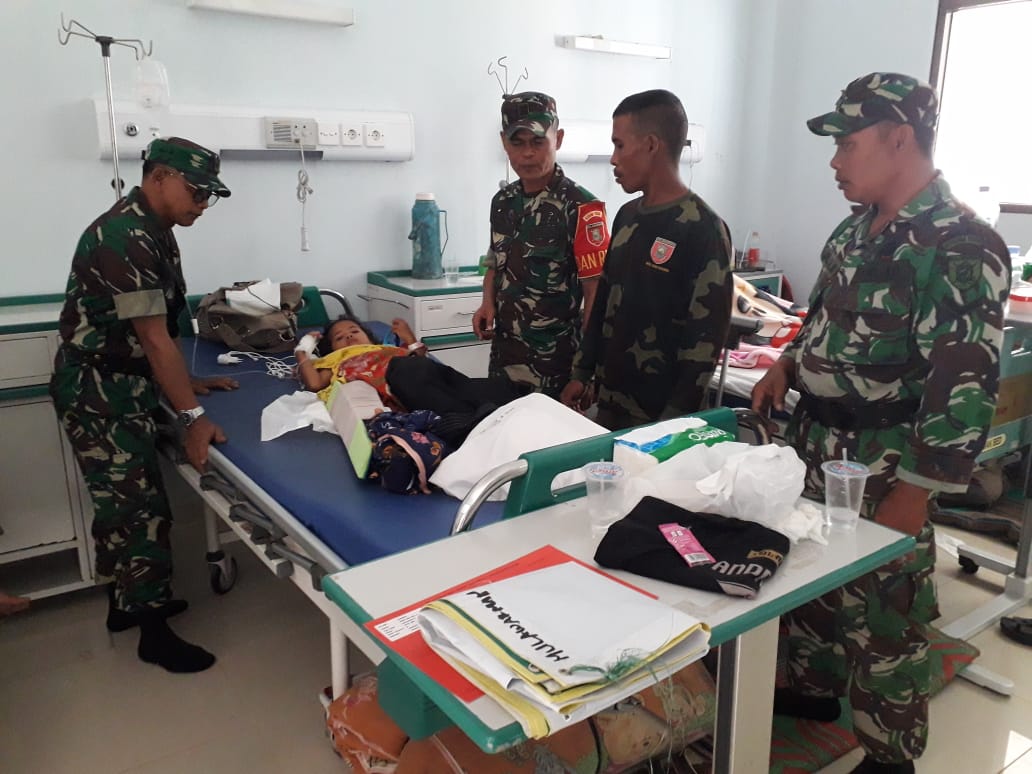 Bersama anggotanya, danramil membesuk Nurhalisa (7) yang merupakan anak dari warganya, Amrin, yang juga seorang simpatisan TNI dan relawan karhutla.