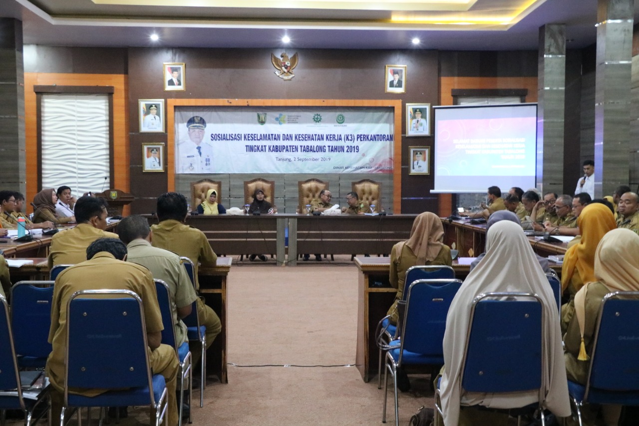 Untuk itulah melalui Dinas Kesehatan, Pemkab Tabalong menggelar sosialisasi K3 Perkantoran, di Gedung Pusat Informasi dan Pembangunan Tanjung. Senin, (2/9/2019).