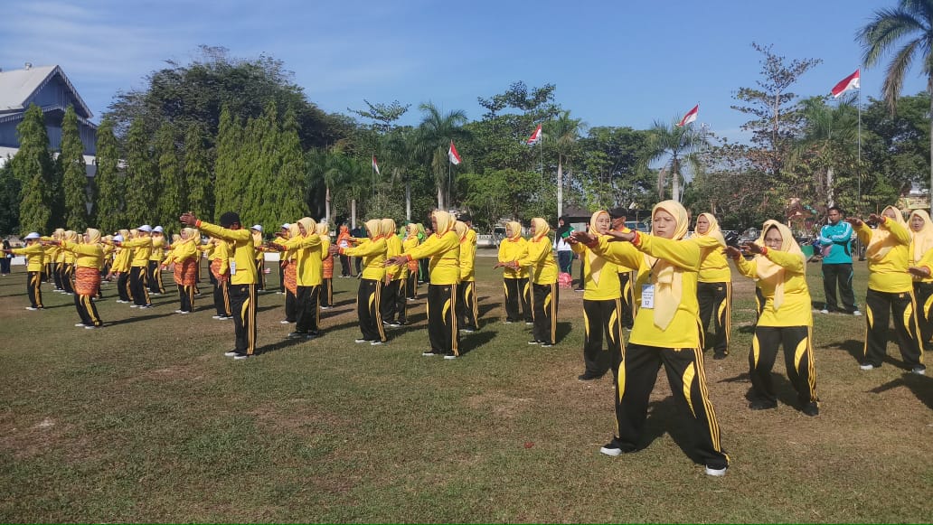 Sementara itu, usai lomba senam yang dilaksanakan mulai pukul 07.00 wita, kegiatan dilanjut dengan lomba paduan suara dan yel-yel. MC Tabalong/Mona