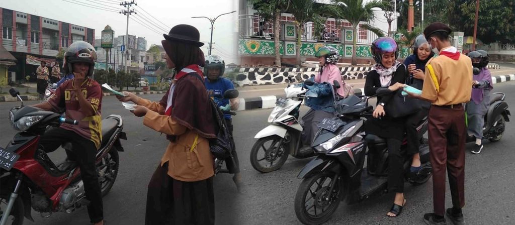 Adanya kabut asap melanda Tabalong hal itu mendorong Satgas Pramuka Peduli Kwartir Cabang Gerakan Pramuka Kabupaten Tabalong menggelar berbagi masker gratis bagi masyarakat, Selasa, (17/9/2019).