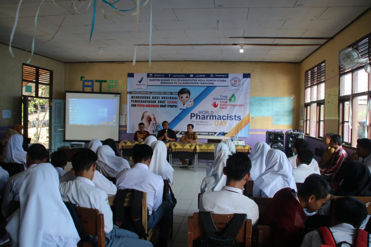 “Cinta Indonesia tolak penyalahgunaan obat menjadi tema yang diangkat dalam sosialisasi ini, hal ini sebagai edukasi terhadap siswa, supaya mereka bisa mengenal tentang penyalahan obat dan dampak buruknya dan bagaimana cara untuk rehabilitasi terhadap penyelahan obat tersebut,” kata Kepala Kantor BPOM di Kabupaten HSU, Bambang Hery Purwanto.