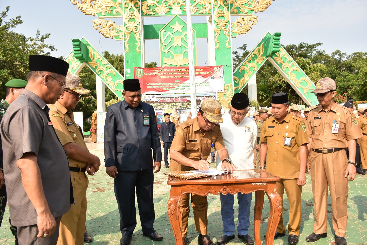 MediaCenter, Tabalong- Pemerintah Kabupaten (Pemkab) Tabalong menyerahkan Dana Bantuan Usaha Ekonomi Produktif (UEP) kepada 30 kelompok usaha di Kecamatan Tanjung dan Murung Pudak, Senin (14/10/2019), di Taman Giat Kota Tanjung
