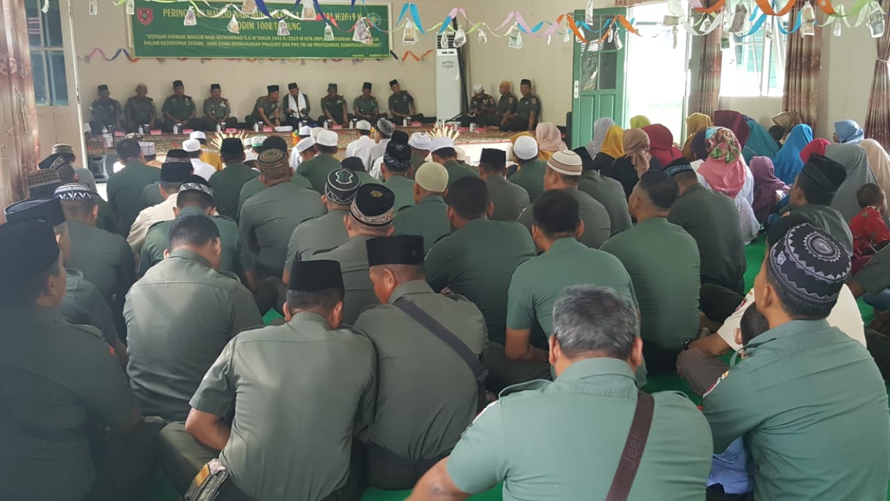 Sementara dalam ceramah,Ustadz H Najibul Khairani, disampaikan, seluruh para prajurit, persit dan PNS Kodim 1008 Tanjung agar di dalam kehidupan sehari-hari sentiasa mengikuti akhlak Rasulullah.