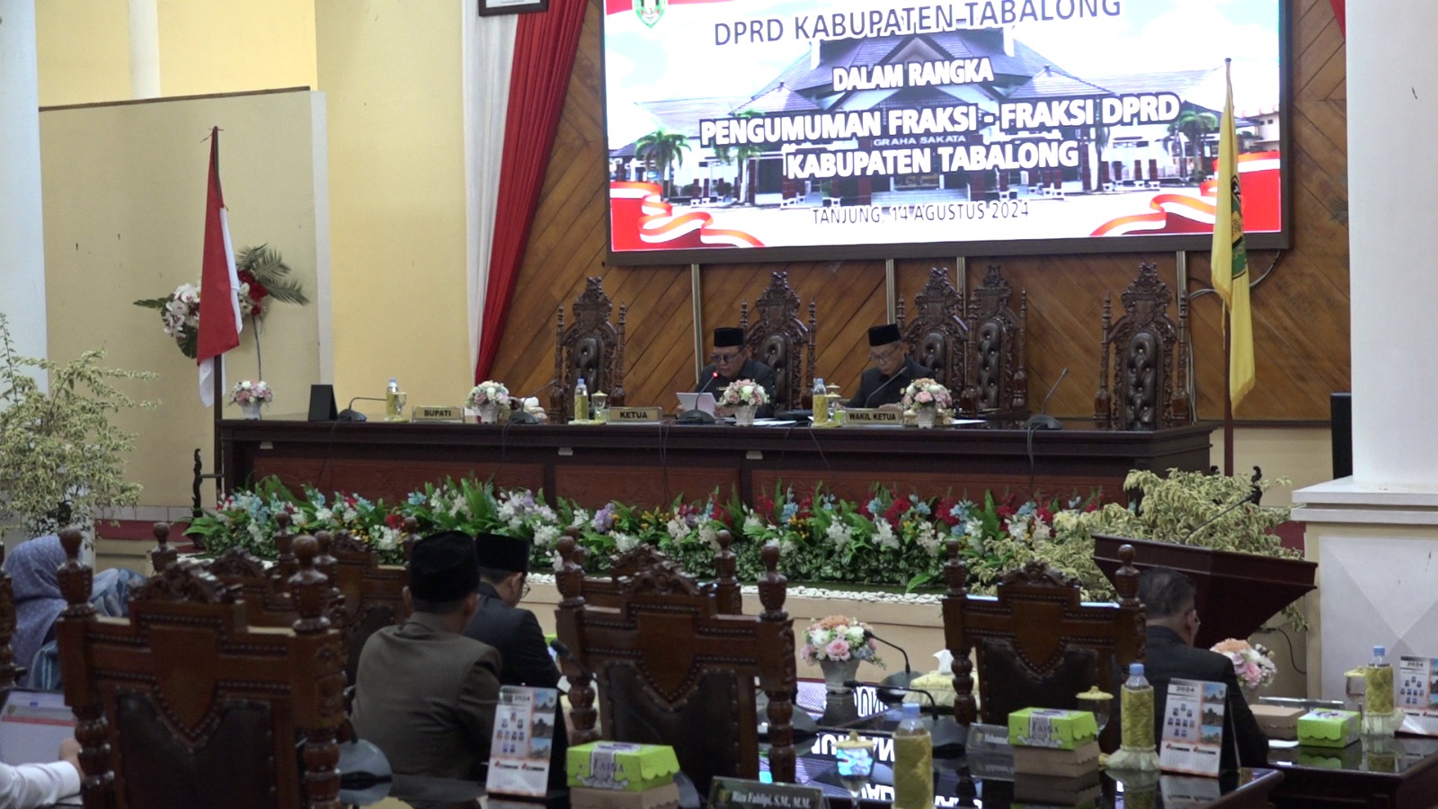 Dewan Perwakilan Rakyat Daerah (DPRD) Tabalong menggelar rapat paripurna dalam rangka pengumuman fraksi-fraksi DPRD Tabalong. Paripurna pengumuman fraksi ini digelar pada 14 Agustus 2024 di Ruang Rapat Paripurna DPRD Tabalong.