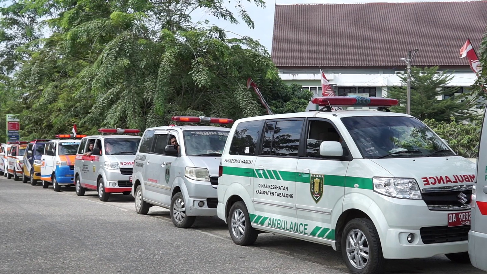 Beginilah suasana saat ratusan mobil ambulans milik anggota Ikatan Sopir Ambulans Kalimantan mengikuti konvoi di wilayah Kabupaten Tabalong pada Minggu pagi.