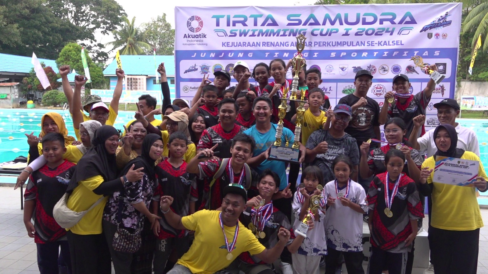 Tuan rumah Tirta Samudra Swimming Club berhasil meraih juara umum pada Tirta Samudra Swimming Club Cup 1 Tahun 2024. Tirta Samudra menjadi juara umum kejuaraan renang se-Kalsel tersebut dengan perolehan 46 medali.