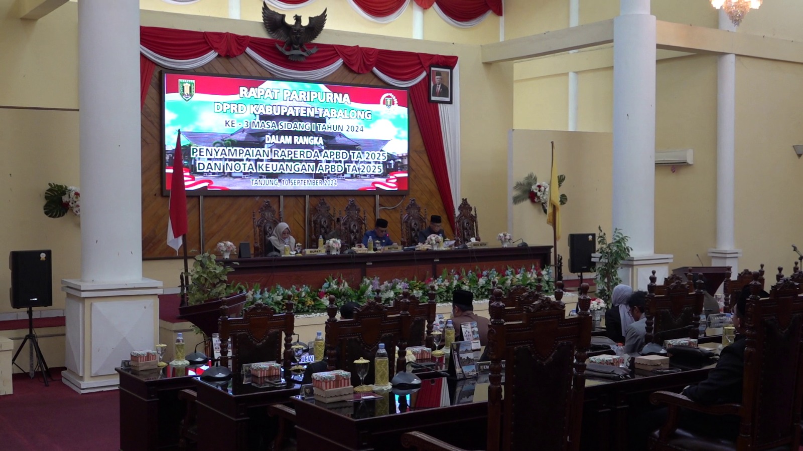 Raperda APBD Tahun Anggaran 2025 diserahkan oleh Penjabat Bupati Tabalong, Hamida Munawarah, kepada 7 fraksi DPRD Kabupaten Tabalong dalam agenda Rapat Paripurna DPRD Tabalong ke-3 Masa Sidang 1 Tahun 2024, pada Selasa, 10 September 2024, di Ruang Rapat Paripurna DPRD Tabalong.