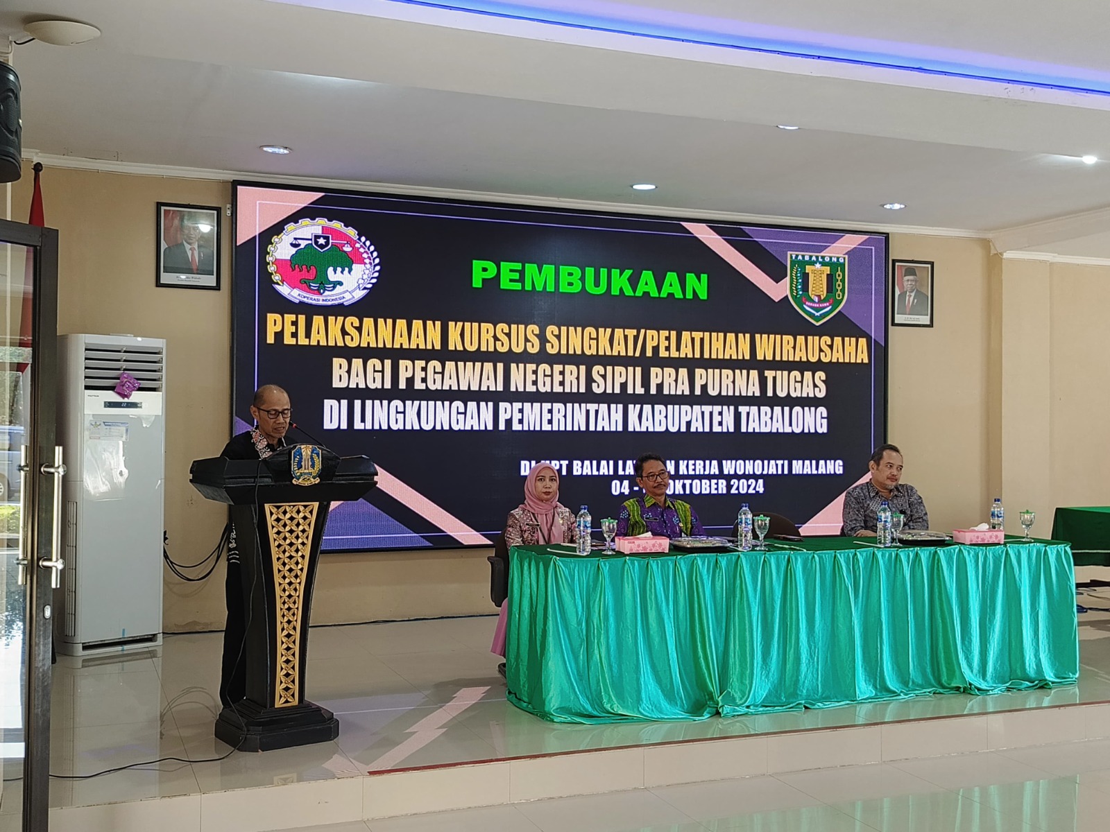 Kursus atau pelatihan singkat diberikan oleh BKPSDM Tabalong, bekerja sama dengan Balai Latihan Kerja Wonojati Malang, Jawa Timur, untuk membekali PNS Tabalong yang akan purna tugas agar siap berwirausaha. Kursus atau pelatihan ini berlangsung sejak 4 sampai dengan 8 Oktober 2024.