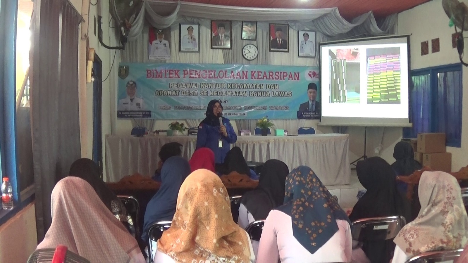 Pihak Kecamatan Banua Lawas menggelar Bimtek Pengelolaan Kearsipan yang diikuti oleh pegawai Kecamatan Banua Lawas dan perwakilan aparat dari 15 desa di Kecamatan Banua Lawas, Rabu, 23 Oktober 2024.