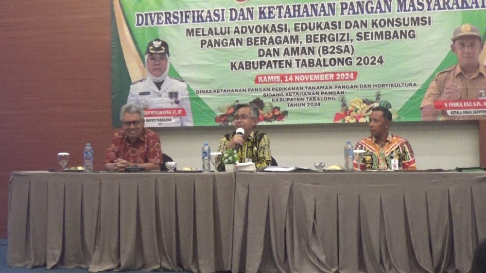 Hal tersebut disampaikan oleh Penjabat Bupati Tabalong, Hamida Munawarah, melalui Staf Ahli Bidang Keuangan dan Pembangunan Setda Tabalong, Zulfan Noor, saat memberikan sambutan pada kegiatan Sosialisasi Diversifikasi dan Ketahanan Pangan Masyarakat melalui Advokasi, Edukasi, dan Konsumsi Pangan Beragam, Bergizi, Seimbang, dan Aman (B2SA) di Hotel Aston Tanjung, Kamis, 14 November 2024.