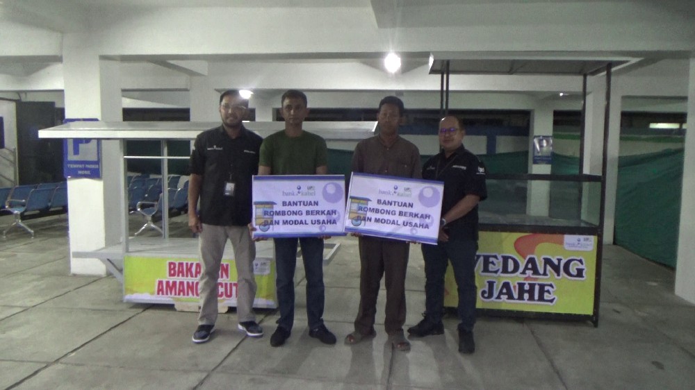 Bank Kalsel menyerahkan bantuan UPZ berupa gerobak dagang untuk dua UMKM di Kabupaten Tabalong. Bantuan ini diperoleh dari zakat pendapatan pegawai Bank Kalsel, yang dipotong dua setengah persen setiap bulannya.
