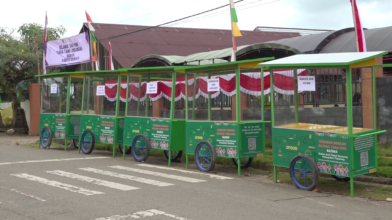 Bantuan gerobak Baznas diserahkan Bupati Tabalong, Muhammad Noor Rifani, kepada pedagang dan pelaku usaha kecil di Bintang Ara. Gerobak yang diserahkan kali ini berjumlah lima unit.