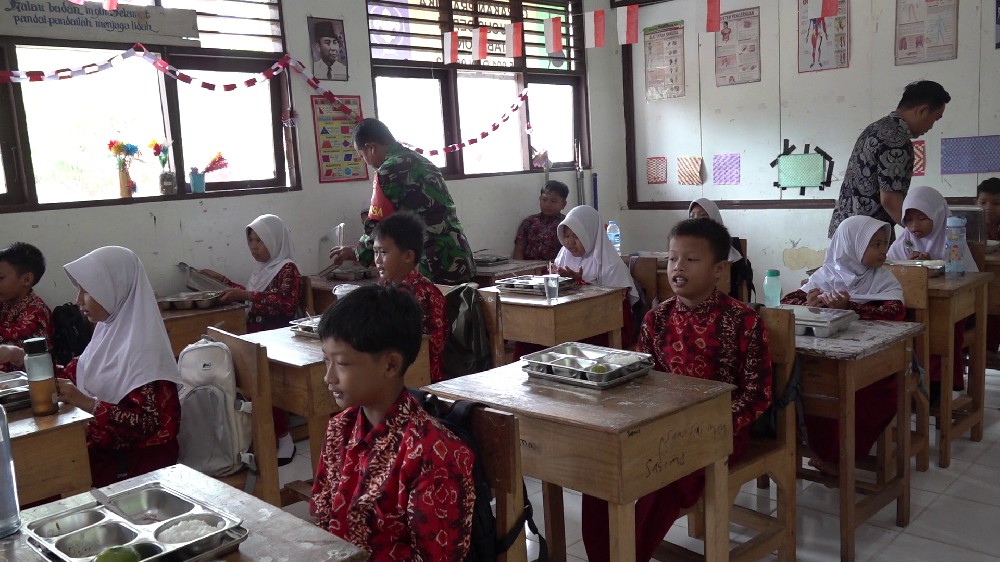 “Alhamdulillah, ada makan bergizi gratis dari pemerintah. Makanannya enak,” ungkap Nafisa, siswi SDN Tanta.