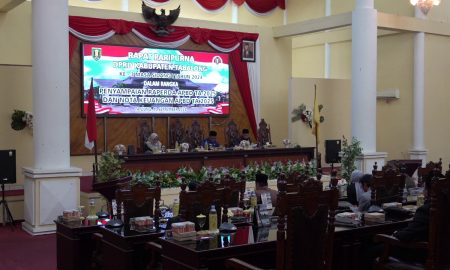 Penjabat Bupati Tabalong, Hamida Munawarah, menyampaikan Rancangan Peraturan Daerah (Raperda) tentang APBD dan Nota Keuangan APBD Tahun Anggaran 2025 kepada DPRD...