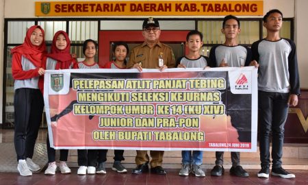 10 atlet panjat tebing dilepas secara simbolis oleh Bupati Tabalong H Anang Syakhfiani di depan kantor sekretariat daerah kabupaten Tabalong, Senin 24...
