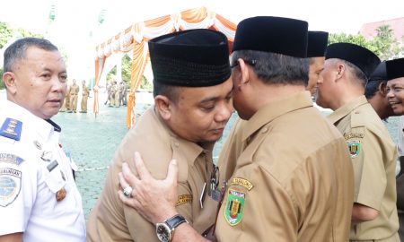 Ratusan Aparatur Sipil Negara (ASN) Kabupaten Tabalong saling bersalaman saat acara Halal Bihalal di Taman Giat Kota Tanjung, Senin 10 Juni 2019....