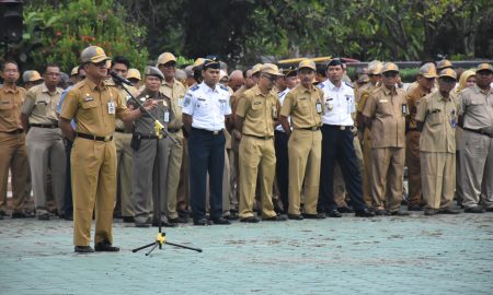 Kepala Badan Pengelolaan Keuangan dan Aset Daerah Kabupaten Tabalong, H Yuzan Noor pada saat menjadi inspektur Apel Gabungan di Taman Giat Kota...