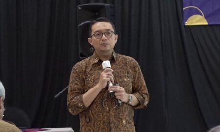 Dosen Fakultas Ekonomi Universitas Gadjah Mada, Amirullah Setya Hadi, yang menjadi narasumber utama Ekspose Laporan Akhir Rencana Induk dan Peta Jalan...