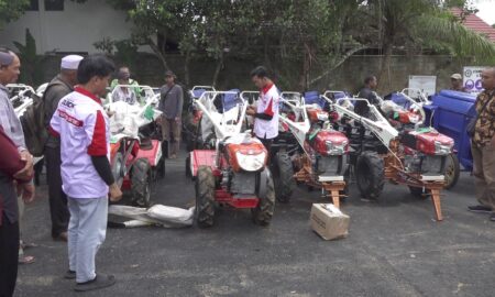 Dinas Ketahanan Pangan, Perikanan, Tanaman Pangan, dan Hortikultura (DKPPTPH) Tabalong menyerahkan bantuan alat dan mesin pertanian (alsintan) kepada kelompok tani di...