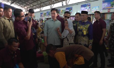 Para pedagang di Pasar Tanjung menyambut antusias kunjungan Wakil Presiden Republik Indonesia, Gibran Rakabuming Raka, di lokasi tersebut yang dilakukan pada...