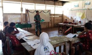 Prajurit TNI yang tergabung dalan Satgas TMMD ke-104 Kodim 1008/Tanjung di Desa Hayup bukan hanya bertanggung jawab dalam pekerjaan fisik namun juga...
