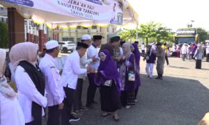 Suasana haru dan bahagia mengiringi kedatangan jemaah haji Kloter 13 Debarkasi Banjarmasin asal Kabupaten Tabalong. Kedatangan jemaah haji ini disambut Pemerintah...