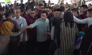 Para pedagang di Pasar Tanjung menyambut antusias kunjungan Wakil Presiden Republik Indonesia, Gibran Rakabuming Raka, di lokasi tersebut yang dilakukan pada...