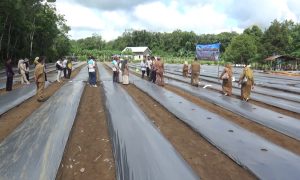 Dinas Ketahanan Pangan, Perikanan, Tanaman Pangan, dan Hortikultura Kabupaten Tabalong menggelar kick-off penanaman cabai Tiung Tanjung di Desa Banyu Tajun pada...