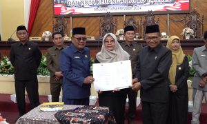 Penjabat Bupati Tabalong, Hamida Munawarah, menyampaikan Rancangan Peraturan Daerah (Raperda) tentang APBD dan Nota Keuangan APBD Tahun Anggaran 2025 kepada DPRD...