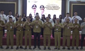 Bupati Tabalong bersama para penerima Beasiswa Tabalong Smart yang diterima di Universitas Pertamina melakukan penandatanganan pakta integritas pada 2 September 2025....